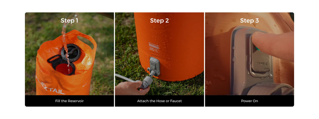 Lerne den Tiny Shower Bucket & Bag kennenUnser eleganter20 L (5 Gallonen)Behälter verbirgt eineintegrierte elektrische Pumpeund einenDuschkopfkeine zusätzlichen Teile, keine umständlichen Schläuche.